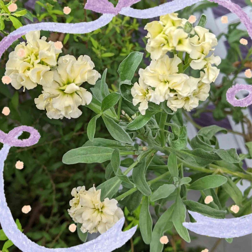 園芸店の見切り品で購入したスプレーストック。素朴な優しさが感じられるお花です*。