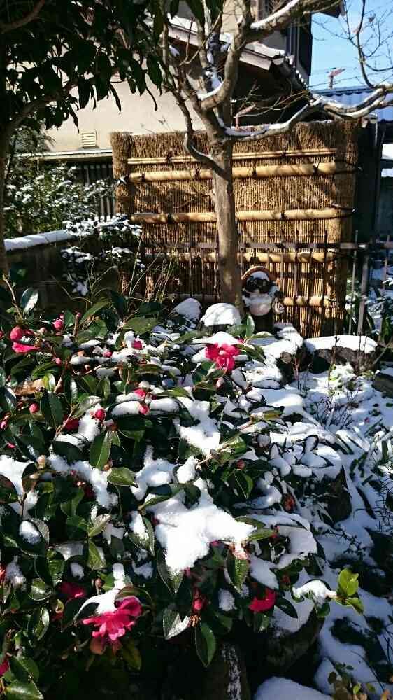 小さな庭,山茶花,雪の朝の投稿画像