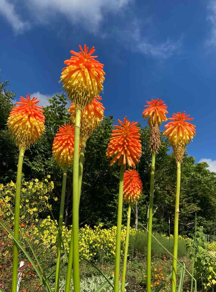 そして、近くの大湯環状列石の遺跡に隣接する『植えるかむガーデン』で大好きなトリトマを📸。青空が気持ち良いです💖