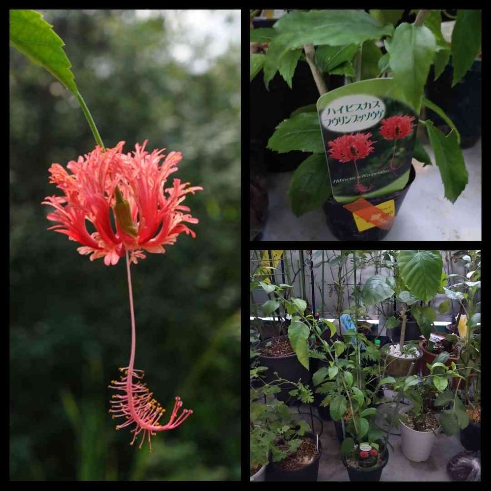 久しぶりの投稿、風に揺れる風鈴仏桑華を園芸店で見かけて9月の初め頃にお迎えしました。