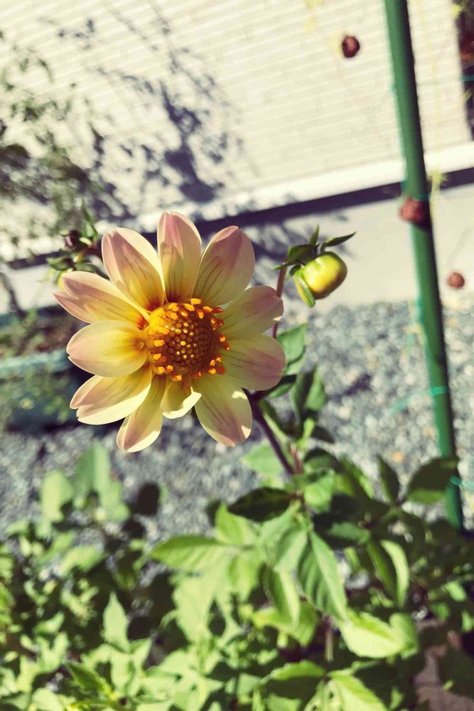 ひとめぼれしたようだったので一緒に植えてせっせと水やりしたダリア、ようやく今日ひとつめが咲きました