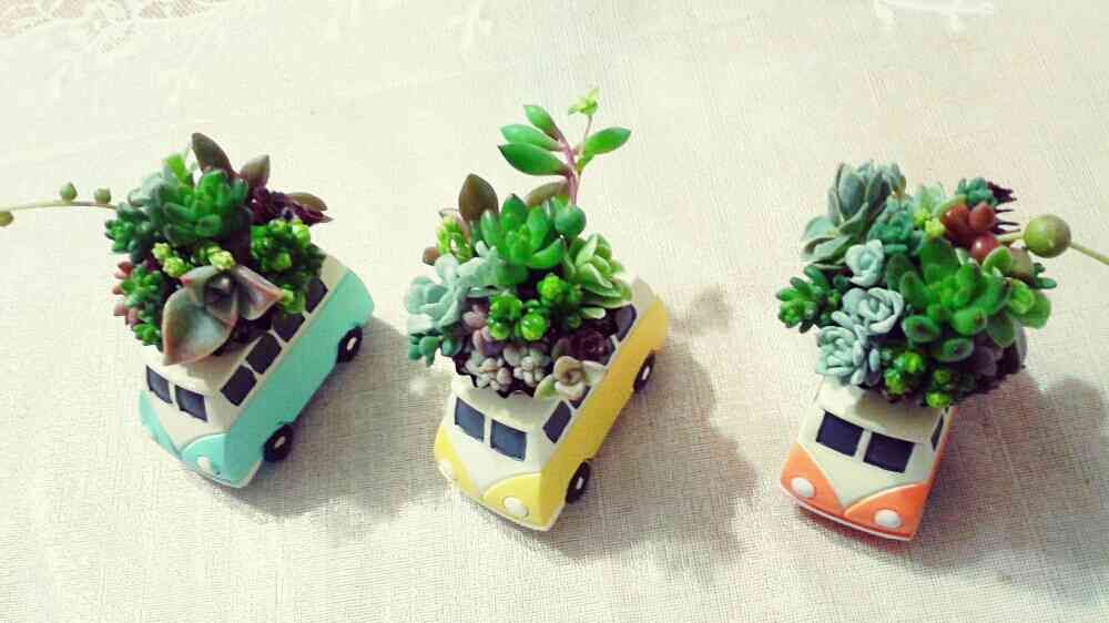 セリアのインテリアcarに寄せ植えしてみました🎵