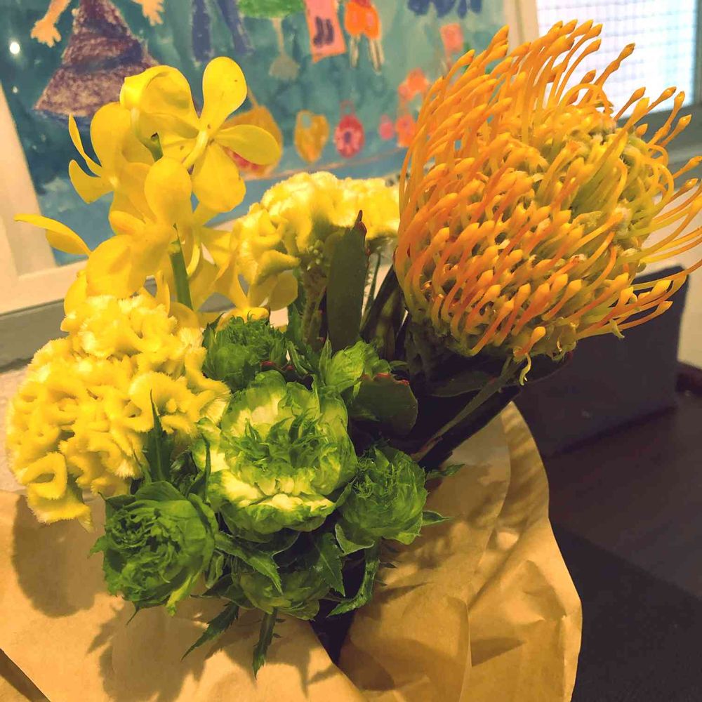 同系色でまとめられ、とても素敵な花束ですね💛💐