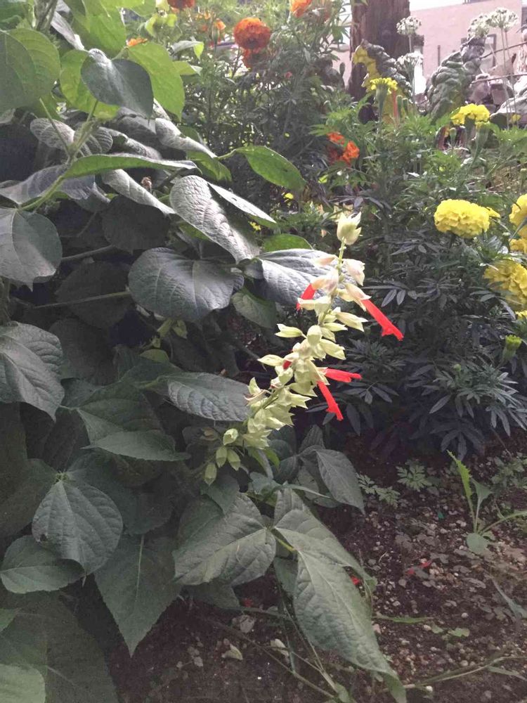 紅白サルビアのトーチライトがすっかりアズキに押されてしまっておりますが、がんばってくれております。