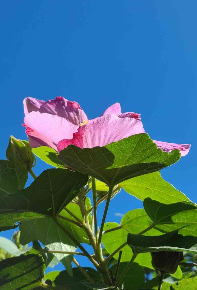 台風一過の青空に映えるピンクの芙蓉💗💗💗