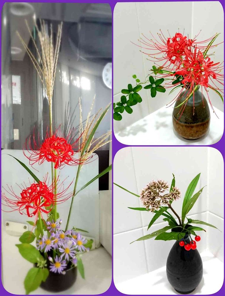 普段はあまり真っ赤な花は生けませんが、お彼岸限定で今まさに満開の曼珠沙華(彼岸花)を生けました🤗