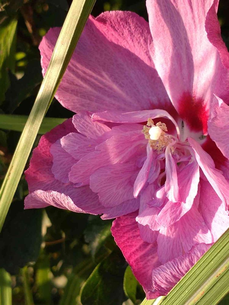 植え込みに半八重咲きのピンク色のムクゲが咲いていました🌺