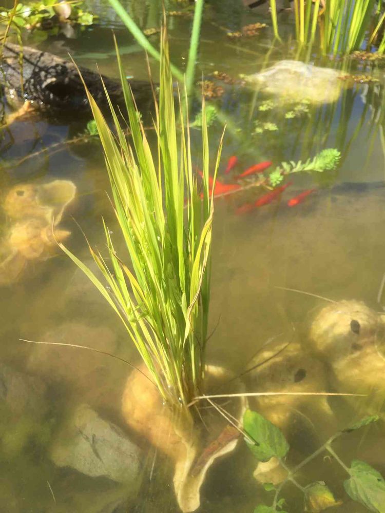 育ちが遅いですが、金魚池の稲が穂を持ち花が咲きました👍😃