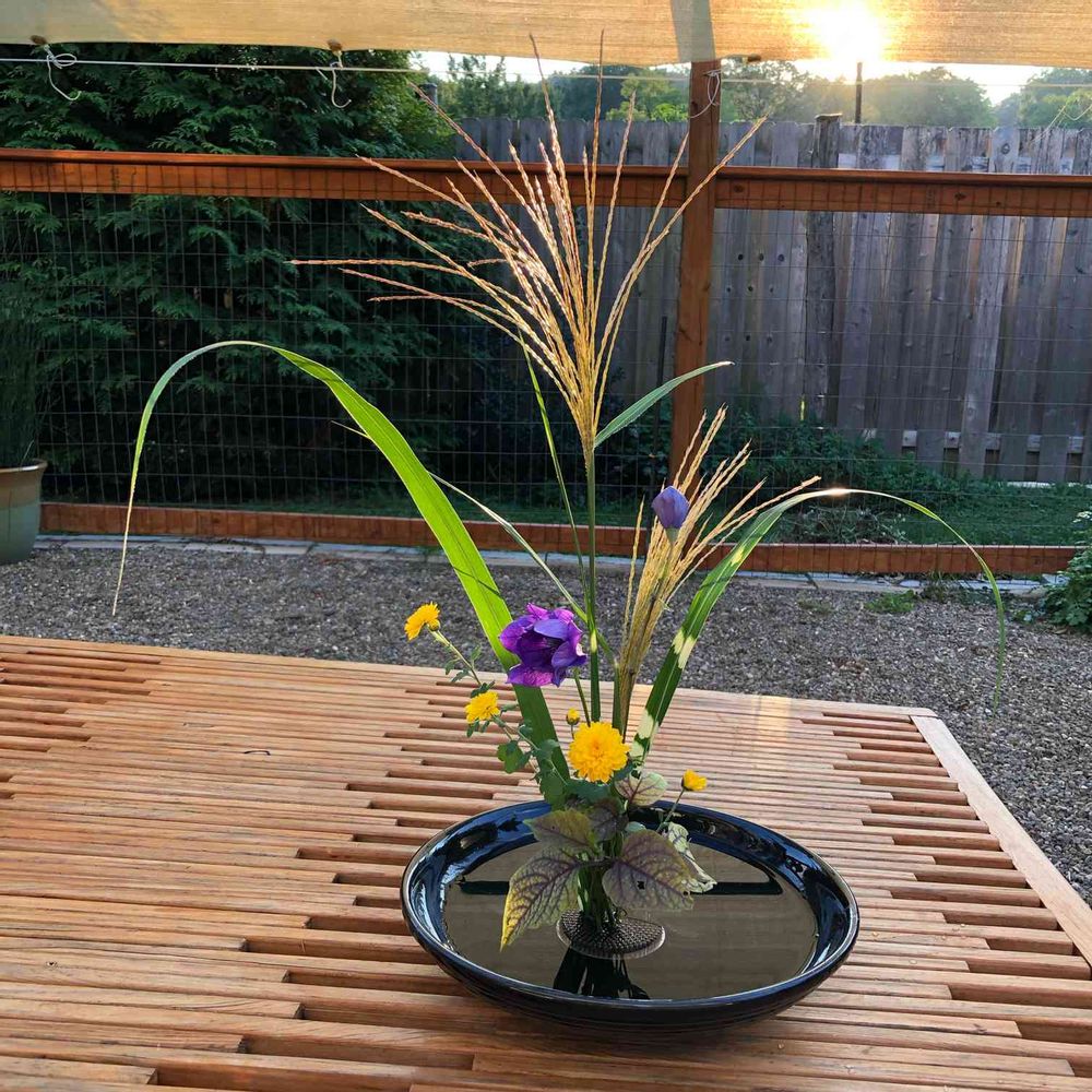 水盤にお花を浮かべただけなんですが、作るのは楽しいです。