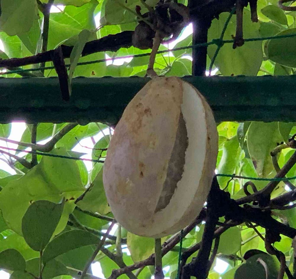 こんばんは。ムベは割れないので、アケビかもしれません。
