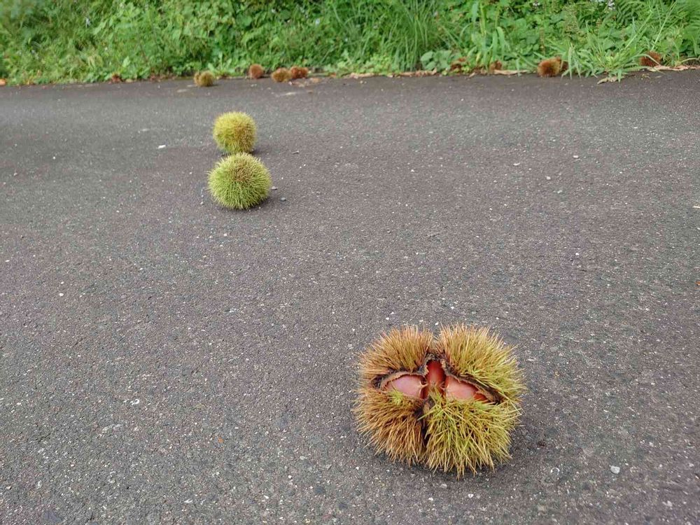 少し山間の町で、大粒の栗が毬のまま幾つも転がってたーーー🌰(⊙⊙)‼