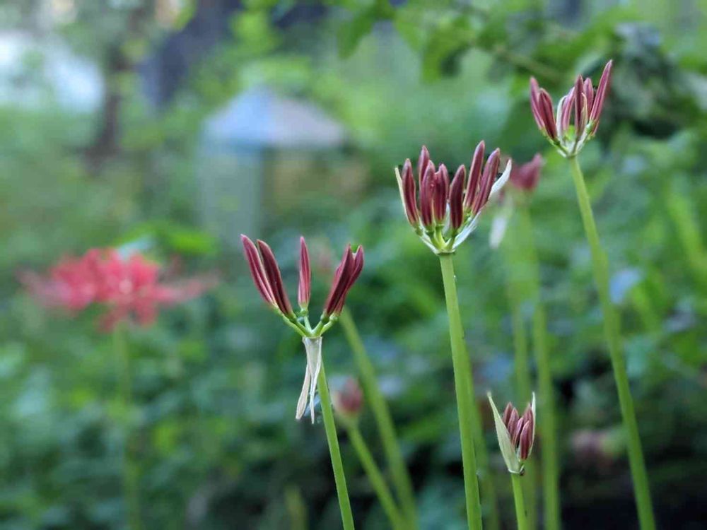 彼岸花の蕾たちも開く日を指折り数えて待っています。
