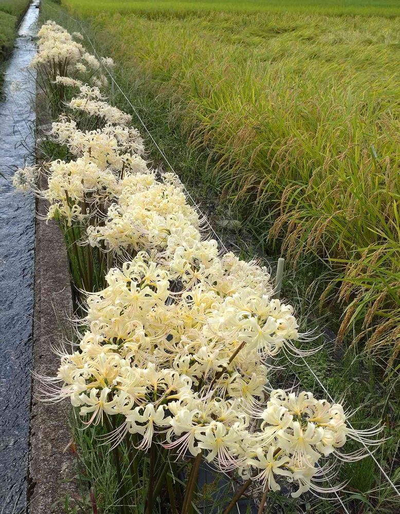 この田んぼの畦はみんな白のヒガンバナなのね👏👏👏