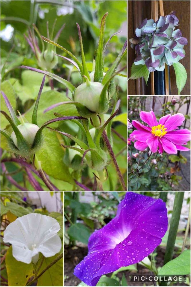 小さな庭,白朝顔「天の雪」,秋明菊(ピンク、八重咲き)の投稿画像