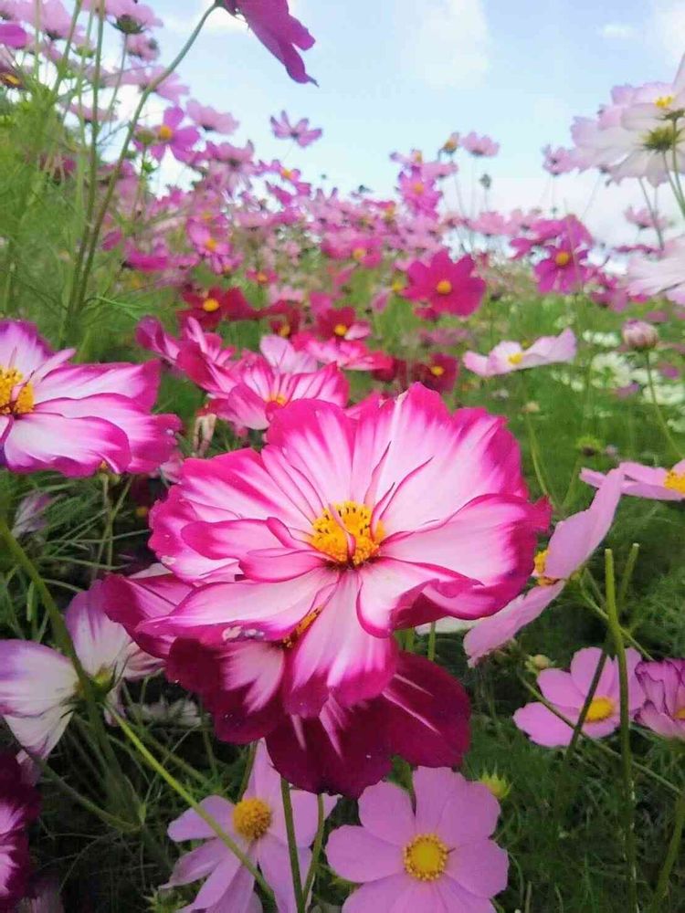 コスモスは大好きなお花🌸ですが、picのような綺麗な色のコスモスは見た事がないです。とても素敵なpicをどうもありがとうございました😊