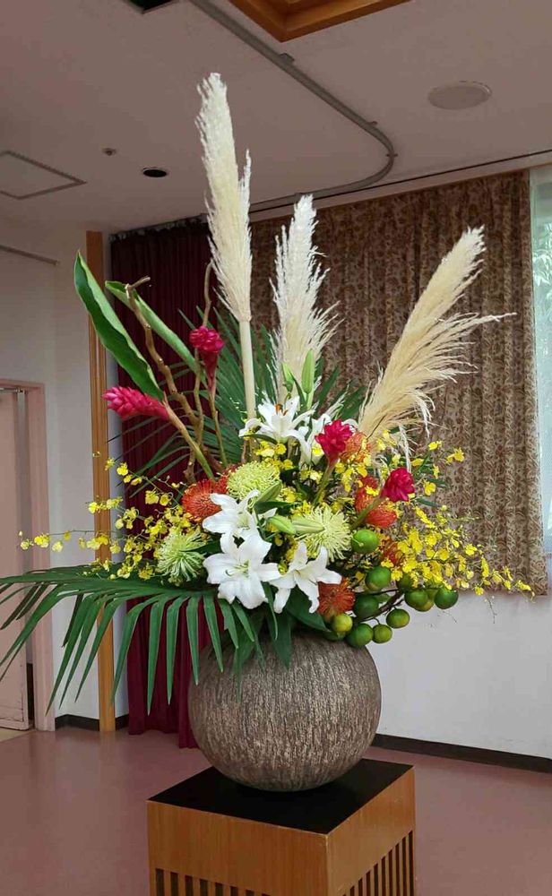 壺がめちゃくちゃ大きく、花材が沢山必要なのに、予算は足りず😱😱