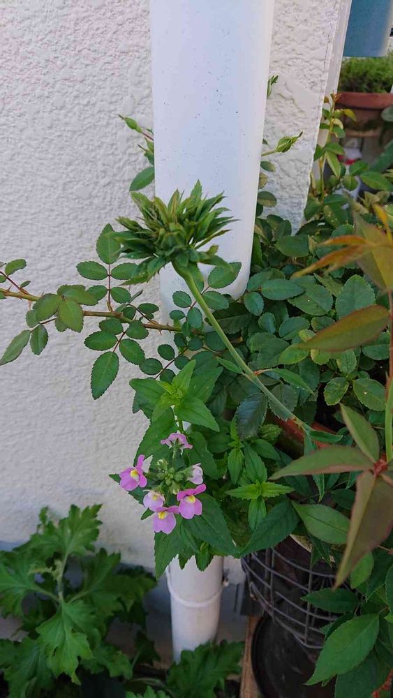 グリーンアイスの鉢からネメシアがこぼれ種子で咲いてました。