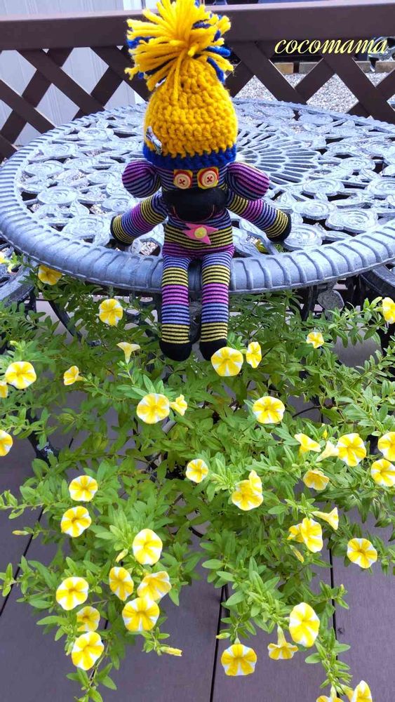 黄色い花と黄色帽子のソクモンちゃんが似合ってますね〜😆💖