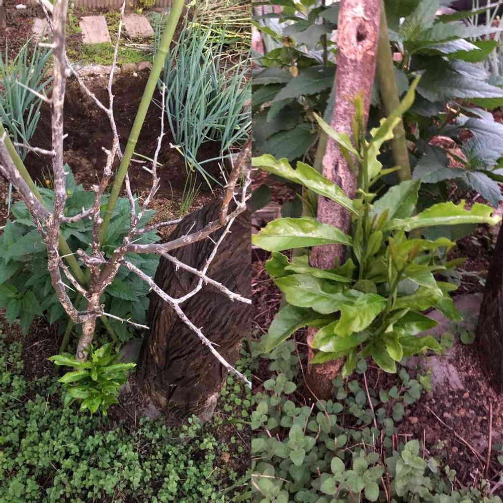 レモン🍋の木が枯れてどうしようかと思っていたら、下から芽吹いているでは😲