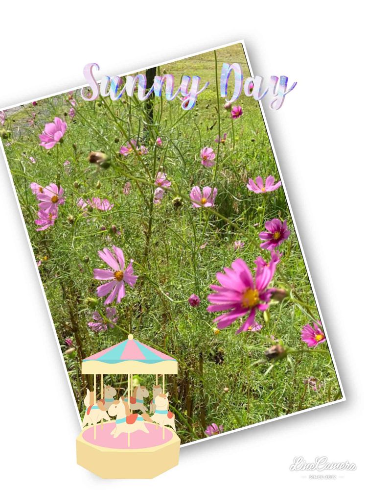 見ていただいてありがとうございます💕コスモスとメリーゴーランド🎠