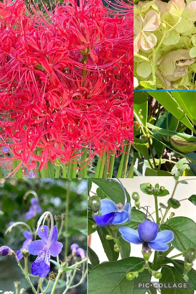 彼岸花あちこちこの辺りも咲き始めています らにい–さんちは 満開で真っ赤ですね、💕青行ってお花は涼しげですね色とりどりでいいね👍👍👍