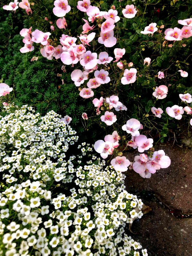 通路の両サイドにアリッサム&ディアスキア咲いています🌸