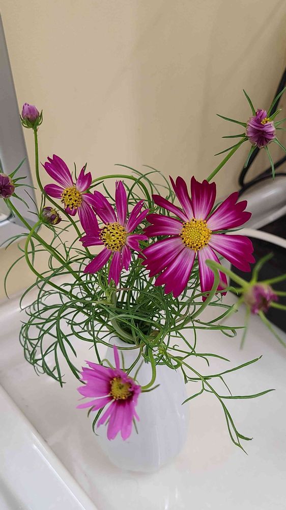 今日は朝から出掛けていて、今日のお花が、コスモスだったので、昨日洗面の場所に、カットしたコスモスを、投稿します。