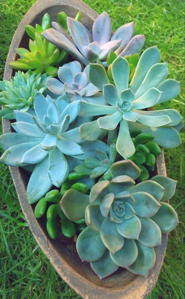 緑色でも少しずつ色が違ってて、グラデーションみたいな素敵な寄せ植えですね。