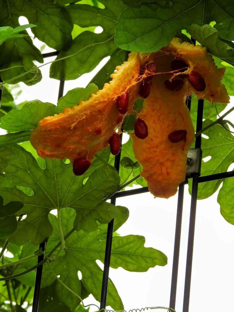 民家の庭先で見た❗爆発した💛ゴーヤの実💛