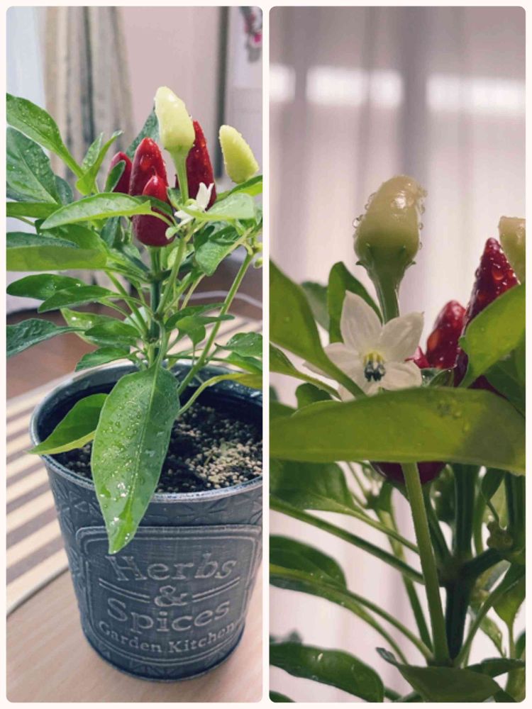 観賞用トウガラシさんもお花🌸が咲いたということは……カラフルな実が増えるってことよね😉🌈