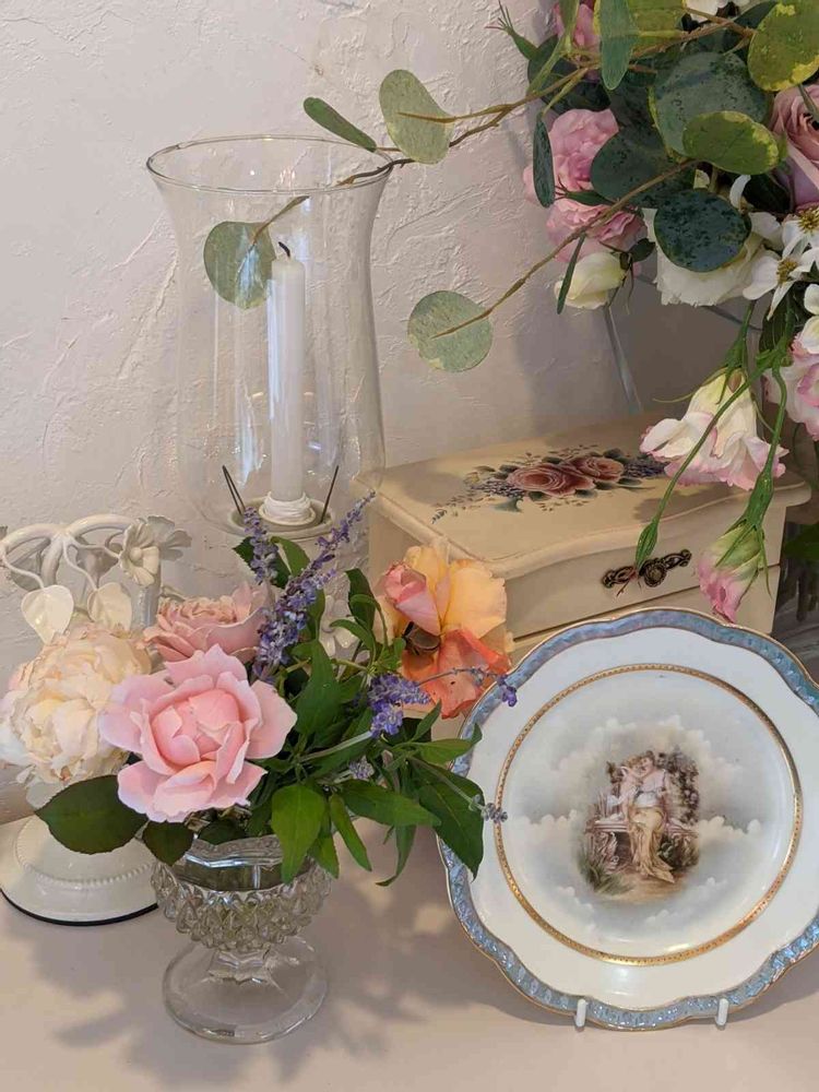 こちらも、お皿とトールペイント、薔薇さんとサルビアが、いい雰囲気だわぁ〜( •ॢ◡︎-ॢ)-♡︎ステキ♡💖