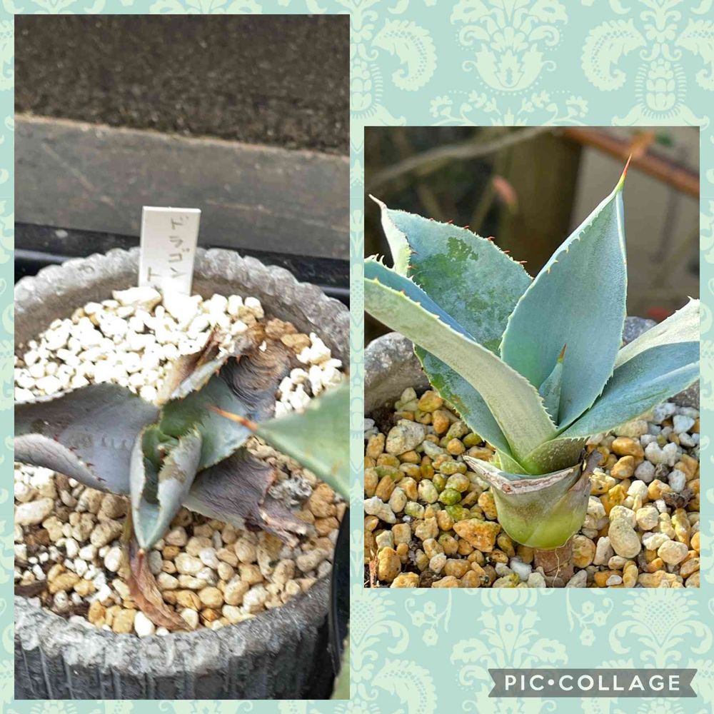 アガベが何者かわからない時に貰ったのでちょっと寒い冬外に近い所で放置してたらやられました〜😭でも凄いですね〜植物って🪴