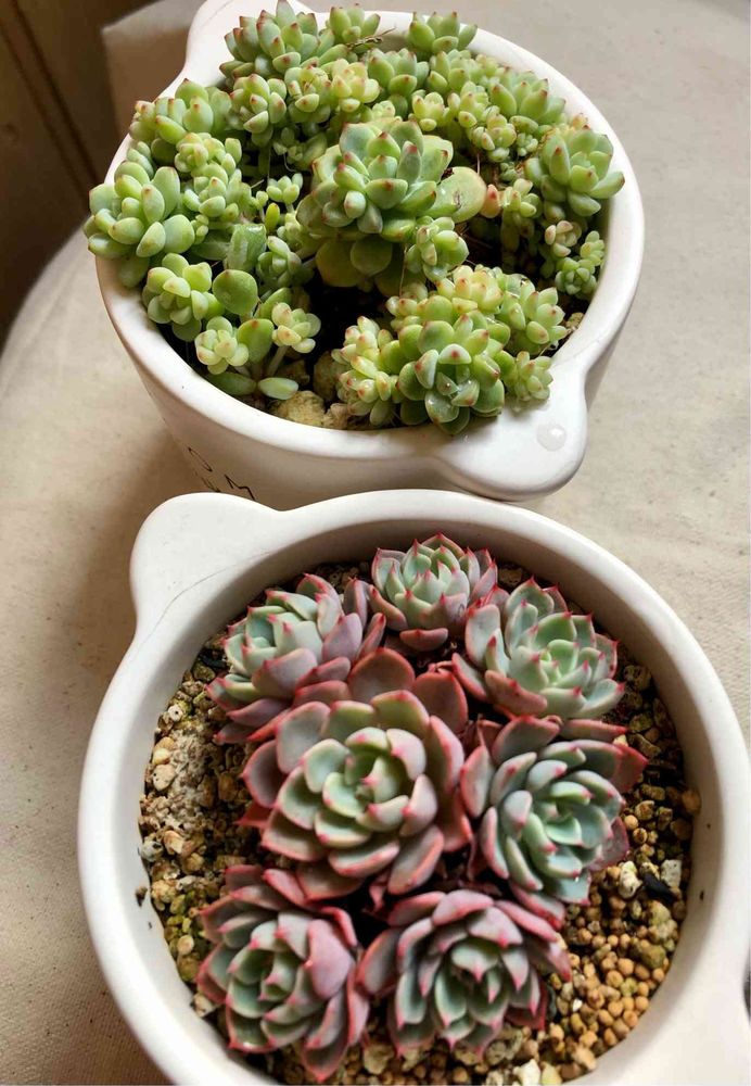 上のぷくぷくして沢山増えてるのも可愛いし下の紅葉してきたのも可愛いし、どちらも素敵です🌿🍁