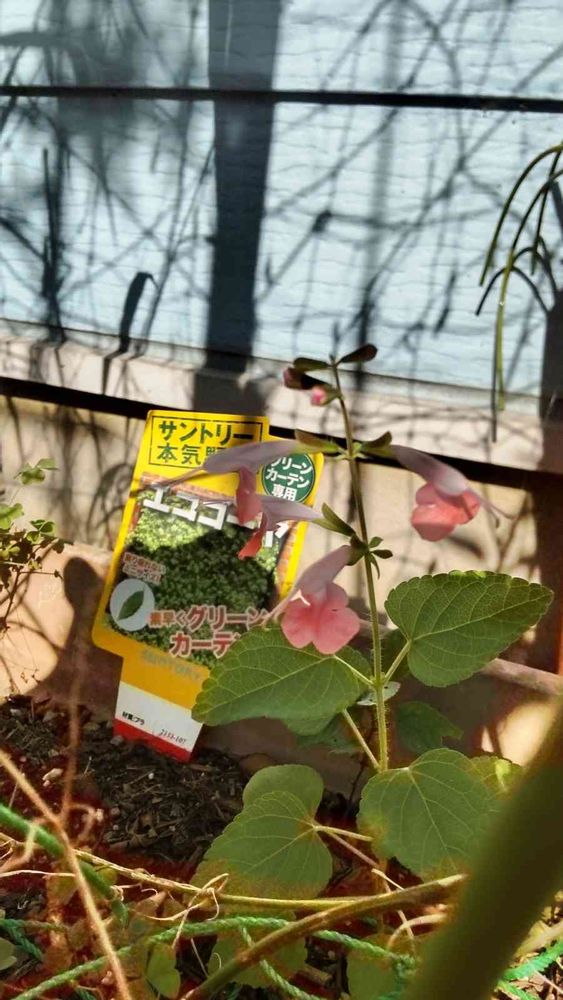 今朝見たら、ゴーヤのプランターの中にサルビアコネクシアのお花が咲いていました❗