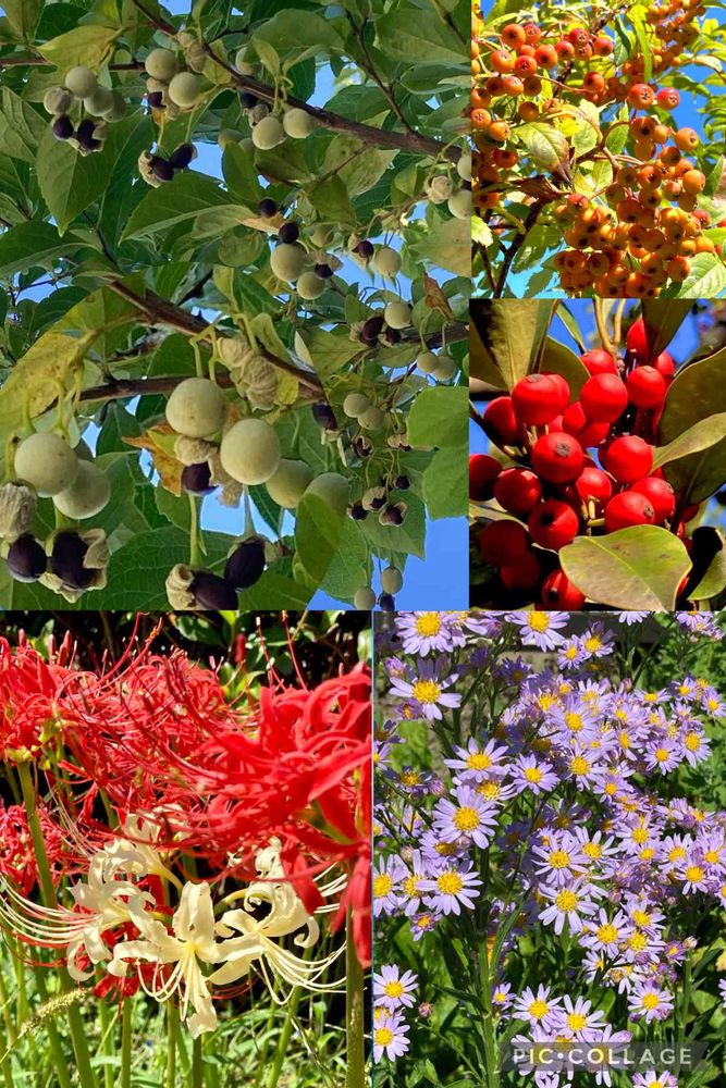 弾けたエゴの木やナナカマドやモチノキも秋の気配の彩りですね💕💕