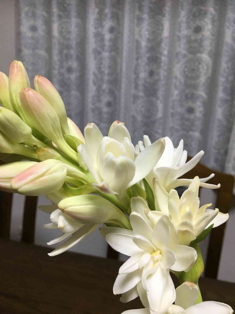 チューベローズは球根からやった時は咲く時期に台風の影響でフニャとなってしまって、そのあと旅行に出かけて、帰ってきたら終わっていたのよ。😅だからすご〜く残念でしたの。
