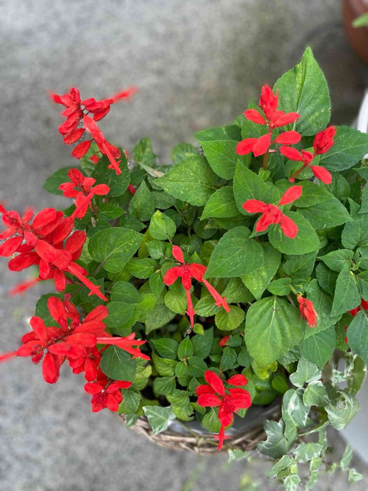 みんみんさんの寄せ植え,赤い花,バッタの投稿画像