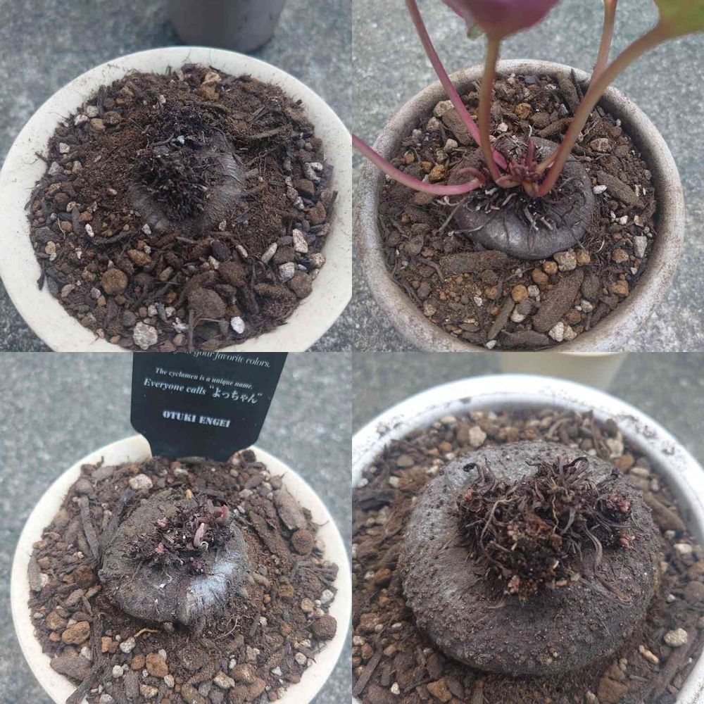 私のお気に入りだった紫のシクラメンがちょっと前まで咲いていたのに最近力尽きて球根だけになってしまって💦