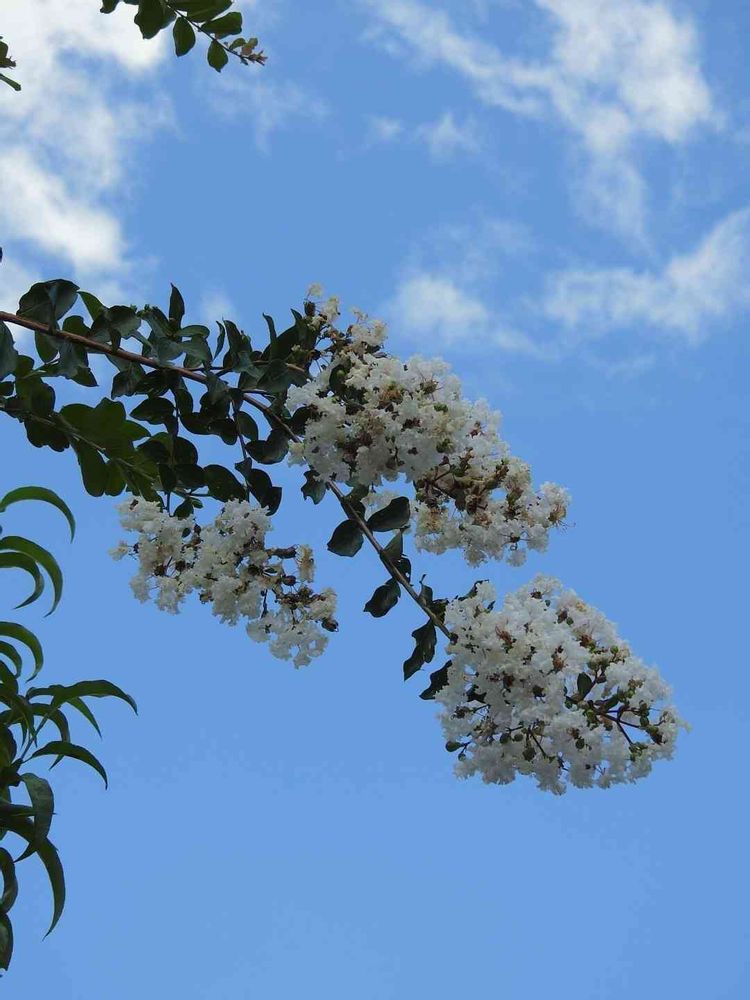 民家の庭先で❗青空とコラボして咲く🤍🌼サルスベリの花🤍🌼