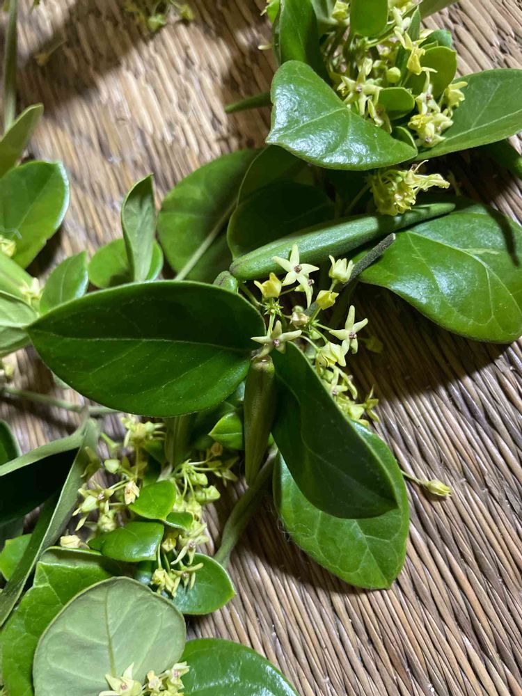 馴染みのない植物なのですが、昆虫館の放蝶温室にいくとたいていオオゴマダラが飼われており、その食草がホウライカガミです。食草まではたいてい展示されていないので、どんな草だろうと思ってました。