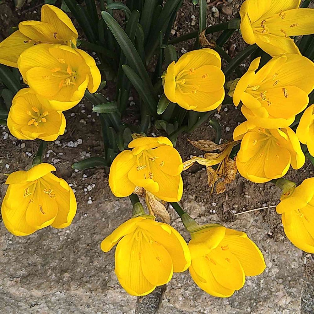 クロッカス?とGoogle Lensで見るとキバナタマスダレと出ます。