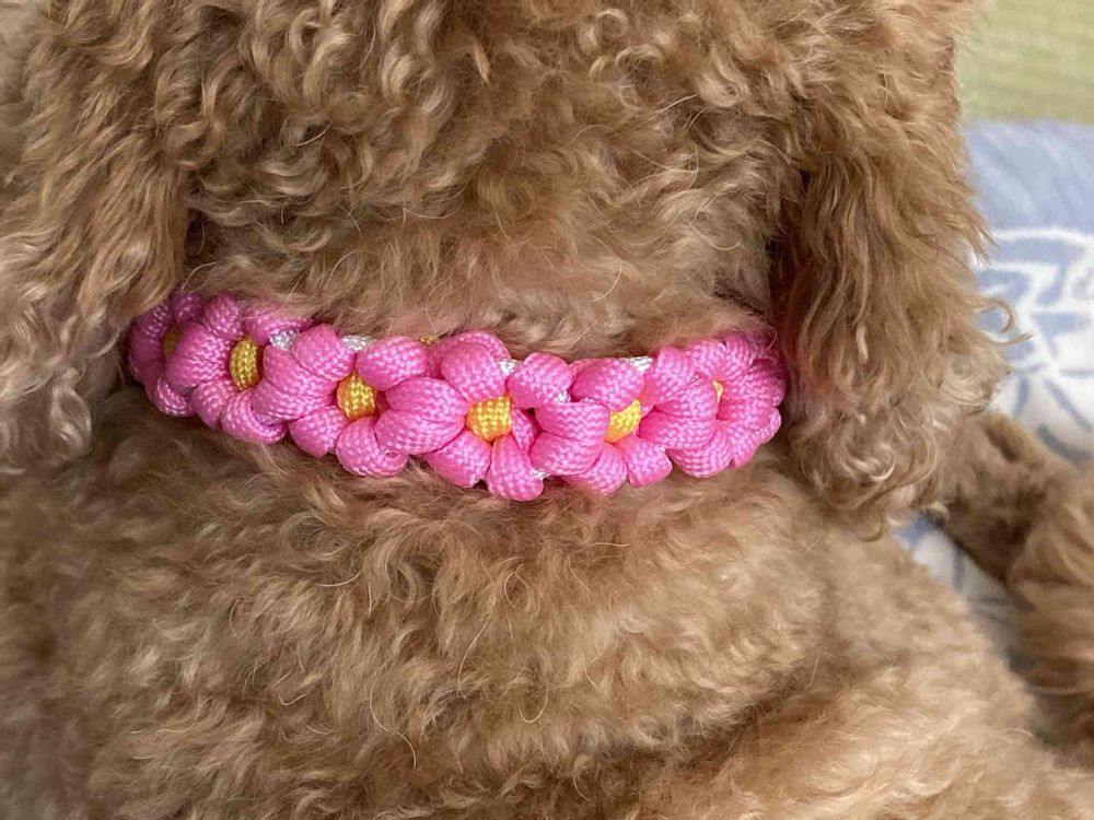 とても可愛いお花がワンチャンに似合ってます😊🌸