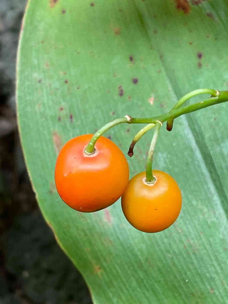 結構、萎れてきている中、まだオレンジ色の鈴蘭の実がありましたよ🧡今朝の様子です。