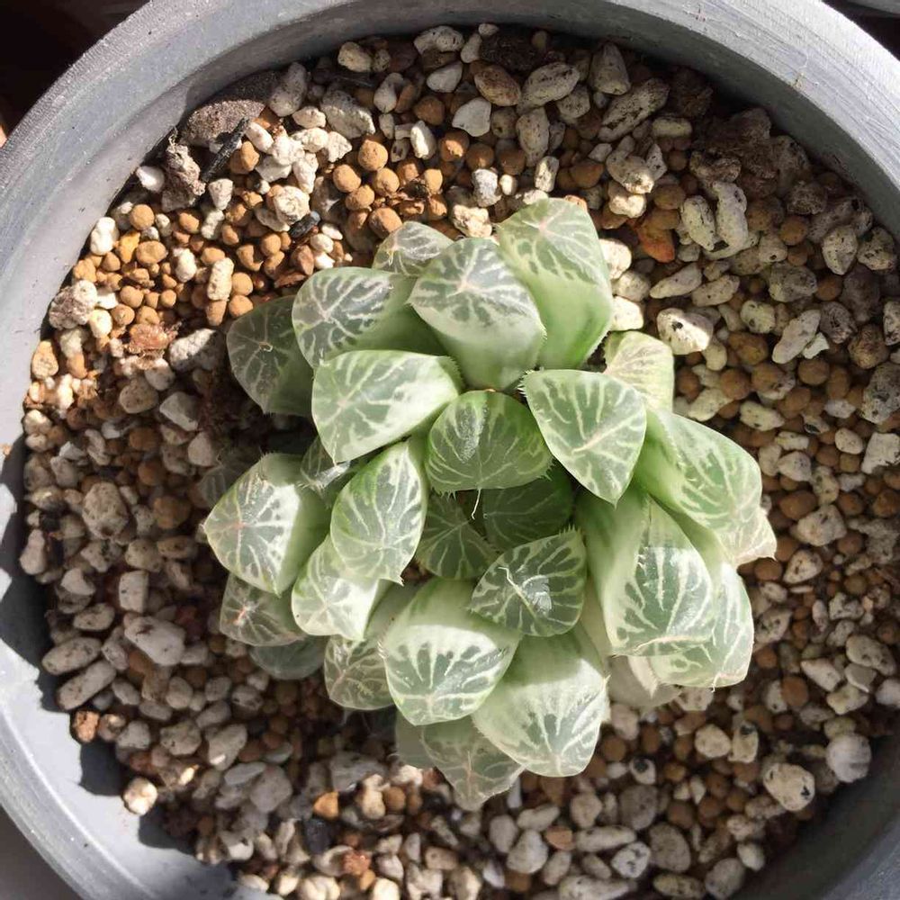 ハオルチア属、ピリフェラの班入り種で透き通った緑の葉に白い班が入る姿が印象的なこの1鉢✨