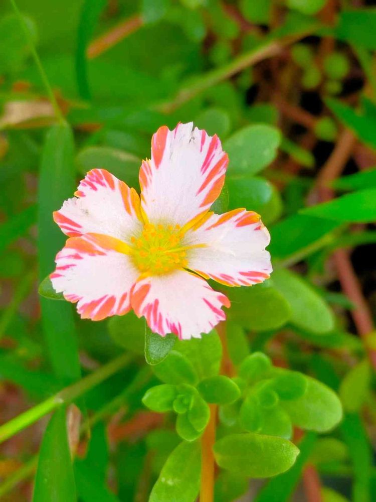 赤や黄色のポーチュラカさんの中に、こんな素敵な色合いのお花が・・・🥰