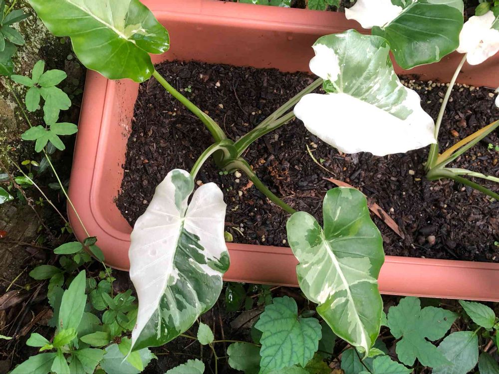 秋になり、一段とキレイさを増してきた斑入りクワズイモ 。増やしたいけど、ヤフオクで高すぎて手が出せない😅