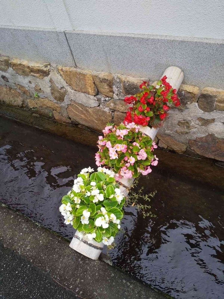竹花壇のある風景デ……🌸🌼🌺💚🌿