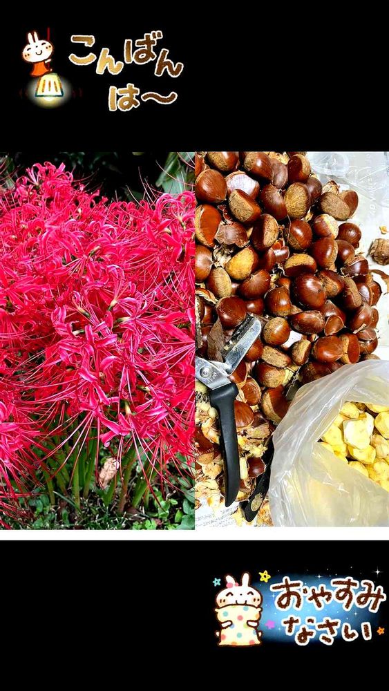 美味しそうだ😃私は大の栗好き🎵私もあちこち痛い。今日は母の病院付き添いで4時間も病院で待ち、坐骨神経痛が悪化した。明日は、栗ご飯が、たべたいが仕事です。おやすみなさい✨