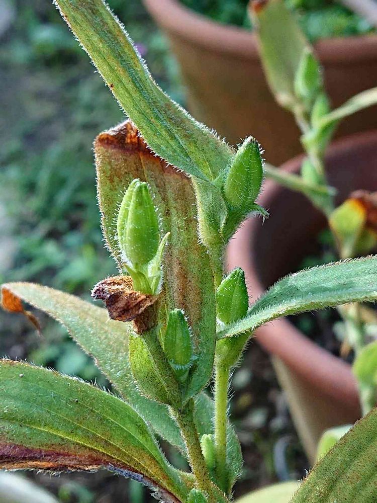 ホトトギスの蕾。葉っぱが少し痛みましたが沢山の蕾が出現❗。ワクワクです‼️❣️。