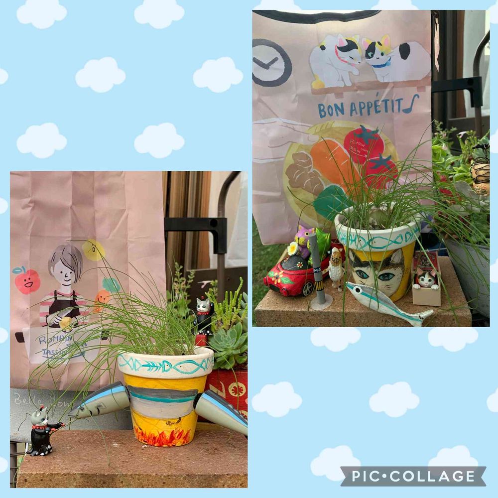 リメ鉢の猫🐱ちゃん🐟咥えてます🤣